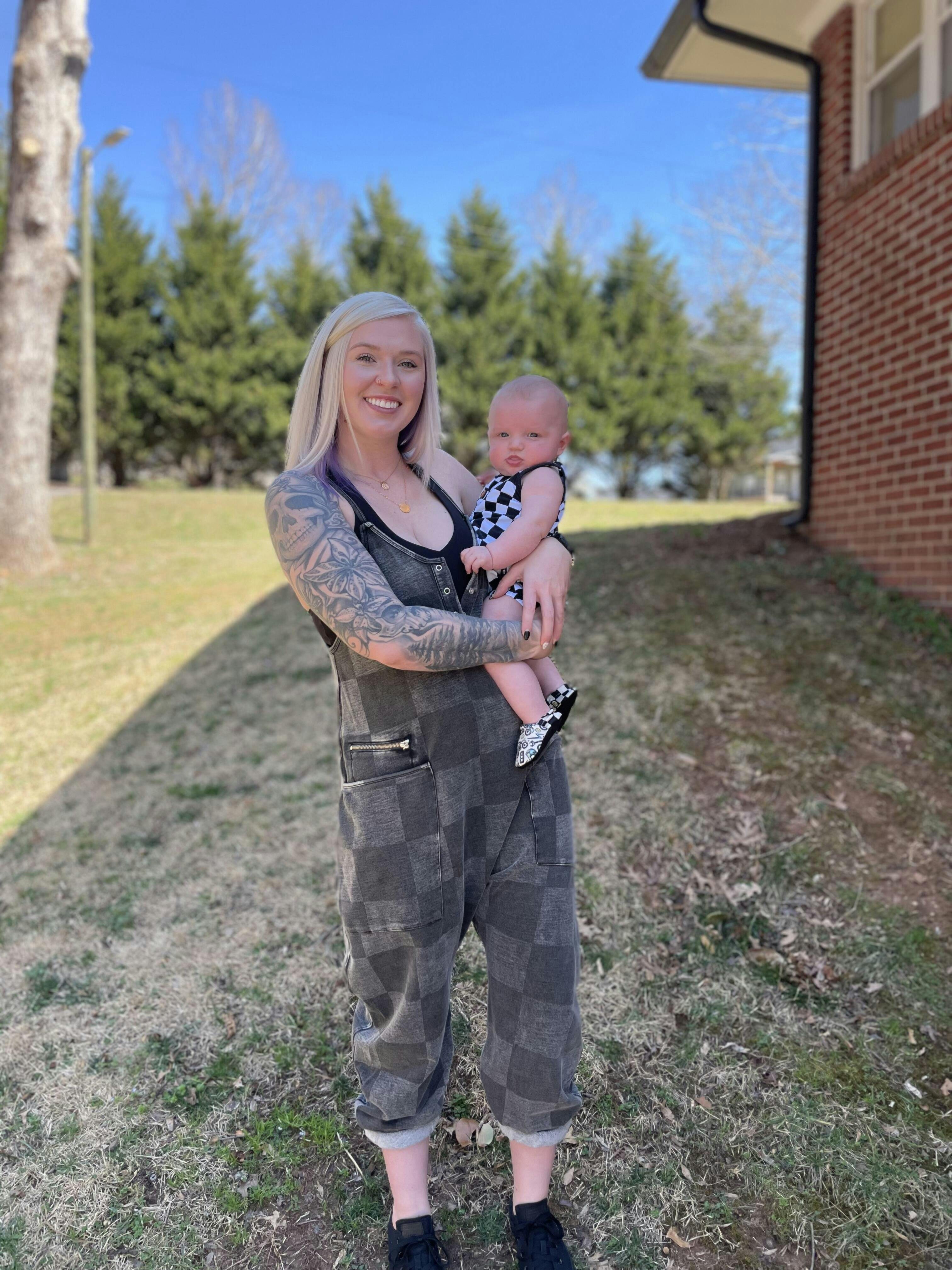 Make a statement with our first ever Women's Tank Romper in Washed Black Denim! This women's romper features adjustable straps, a convenient zipper pocket, and a unique RAGS graphic. Shop matching items for your little boys and girls!